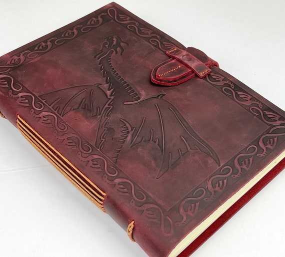 Diario de cuero rojo con dragón en relieve, grande y grueso - Etsy España
