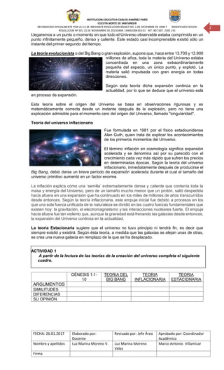 Ficha Trabajo - Ideas Antiguas y Actuales Del Universo y Su Origen C.L.a.C 1G CT | PDF | Universo | Galaxia