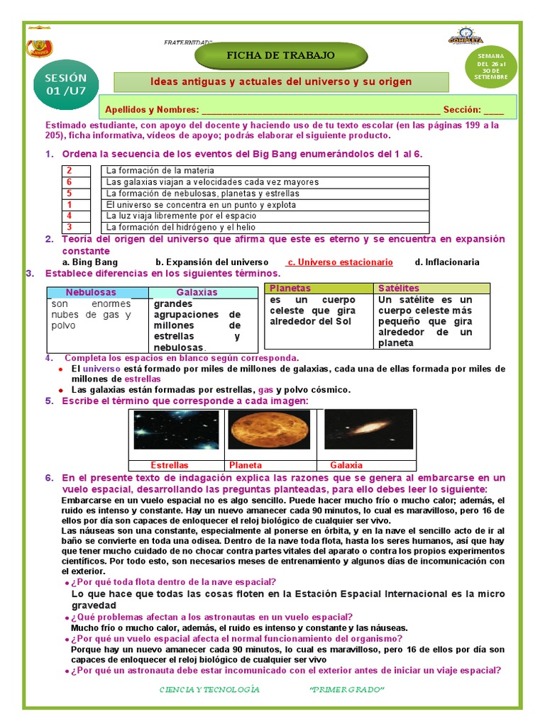 Sesión de ciencias naturales para trabajar el contenido de el universo y sus componentes by Mario Nava - Issuu
