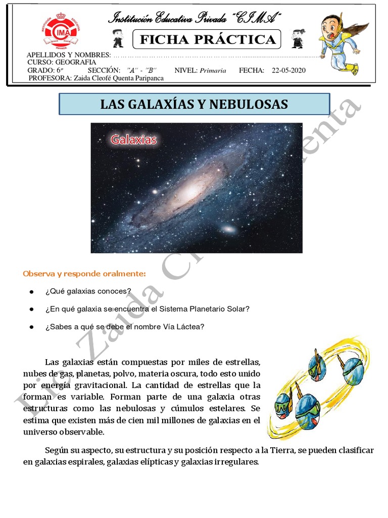 Las galaxias para Sexto de Primaria – Fichas de Trabajo