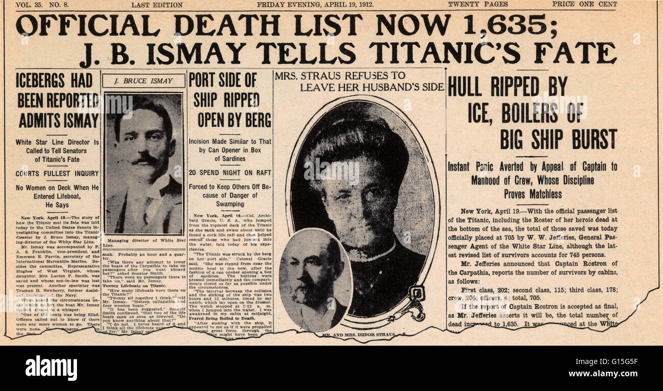 Titanic sinking newspaper fotografías e imágenes de alta resolución - Alamy