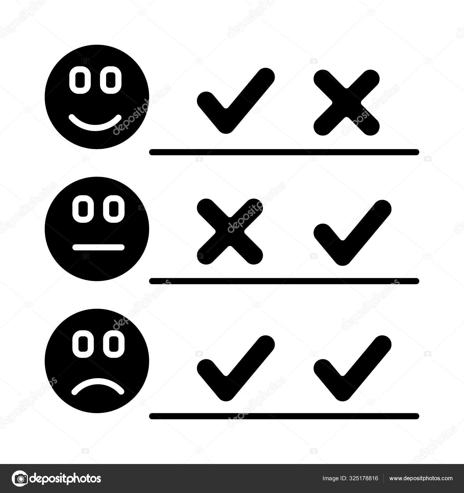 Icono de glifo de lista de comprobación. Elegir opción. Una experiencia buena, mala y neutral. Votación. Nivel de satisfacción. Positivo, negativo. Símbolo de silueta. Espaciamiento negativo Imagen Vector de stock - Alamy