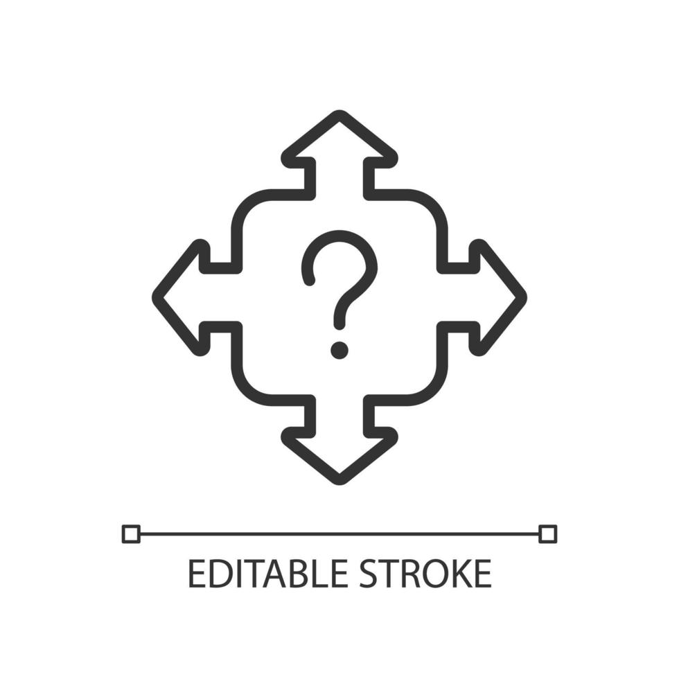 Icono lineal de dirección. elegir el camino correcto. resolviendo tareas y buscando respuestas. Servicio de información. ilustración de línea delgada. símbolo de contorno dibujo de contorno vectorial. trazo editable. 7948347 Vector en