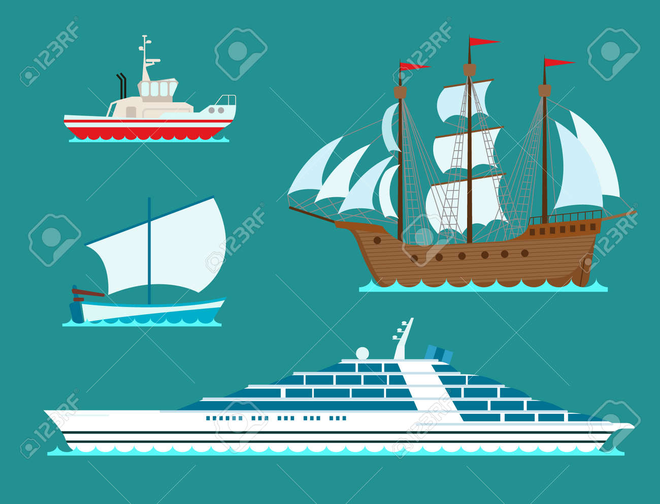Los Veleros Del Vector De La Industria De Viajes Del Buque Del Símbolo Del Mar Del Barco Del Crucero De La Nave Cruzan Sistema De Ilustración del Vector - Ilustración de carga,