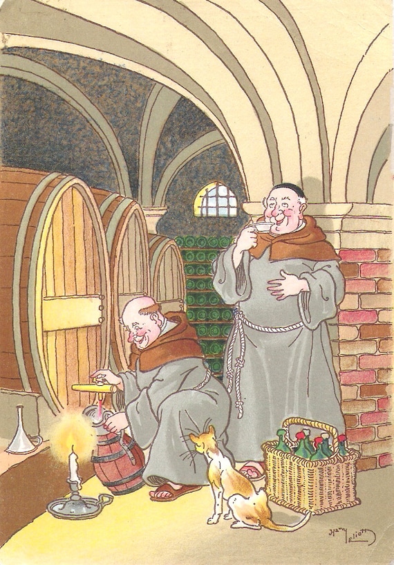 Postal cómica francesa Monjes Tap the Wine Raro Harry Elliot 1882-1959 Firmado Dividido No publicado - Etsy México
