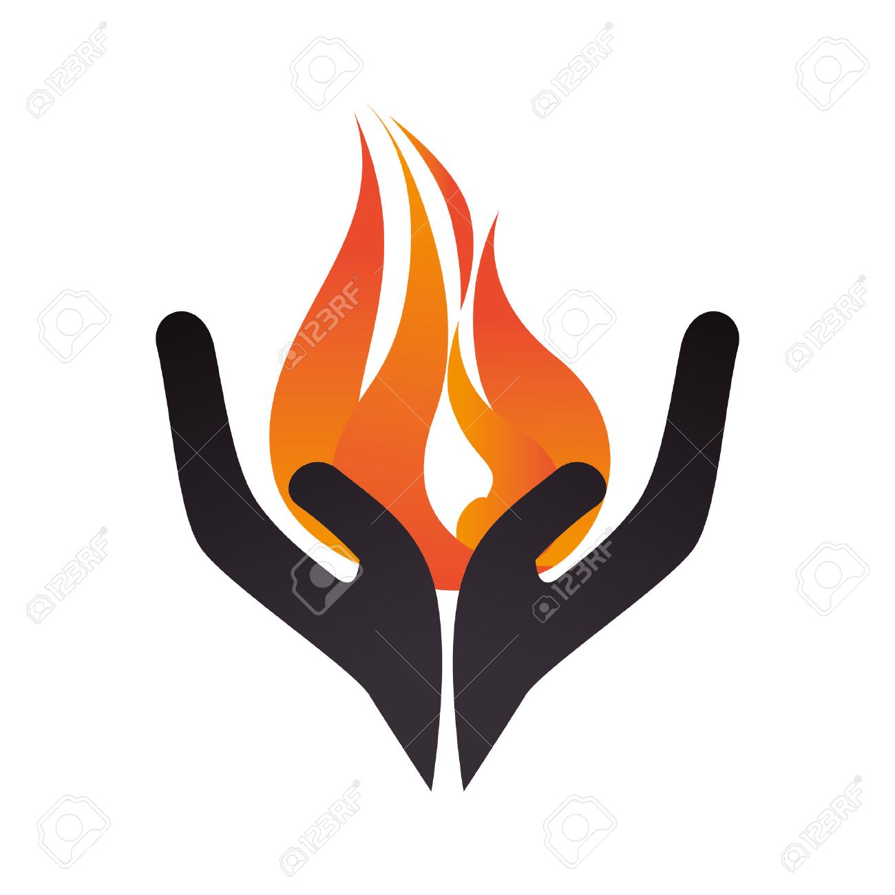 Manos Que Sostienen Una Llama Emblema De Fuego Arden En Llamas Ilustración Vectorial Ilustraciones svg, vectoriales, clip art vectorizado libre de derechos. Image 62040564
