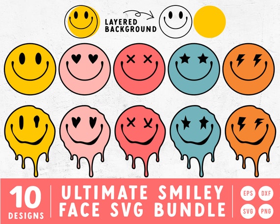 Cara sonriente derretida SVG / Cara feliz de los años 70 SVG / Emoji con ojos de corazón SVG / Cara sonriente retro svg Bundle / Para Cricut, Cameo Silhouette - Etsy México