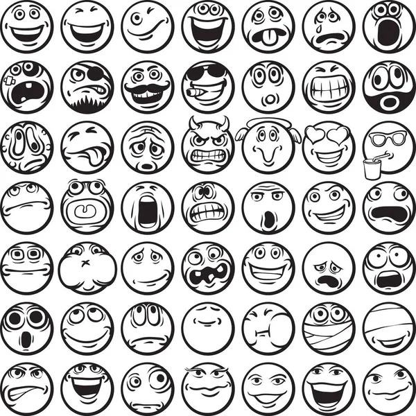 Doodle emoji colección de iconos de cara diseño de boceto dibujado a mano emojis con varios estados de ánimo, incluyendo caras felices, tristes y sonrientes, ilustración de líneas de cómic | Vector