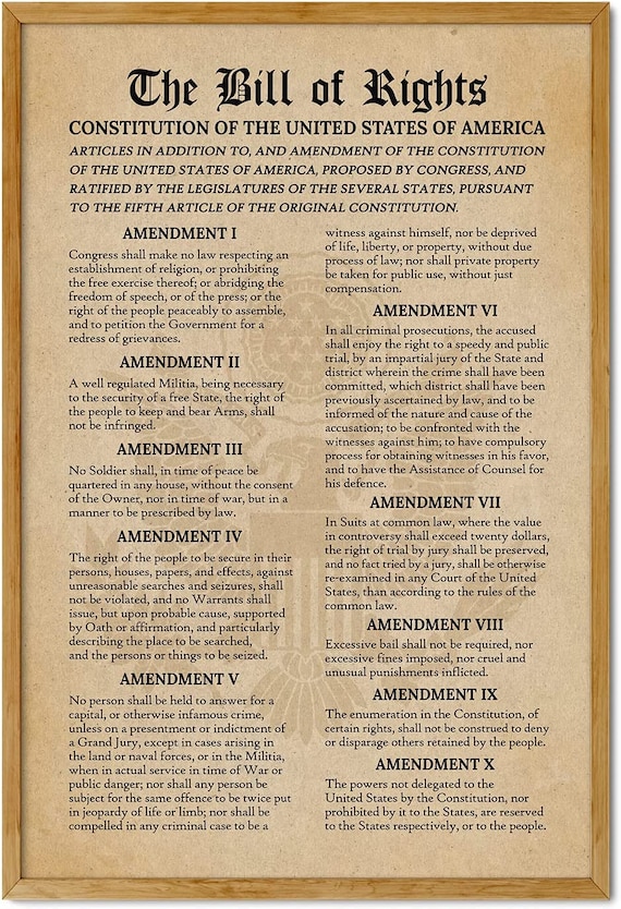 Bill Of Rights - Ten Original Amendments - Constitution US - 1791 - Poster | eBay