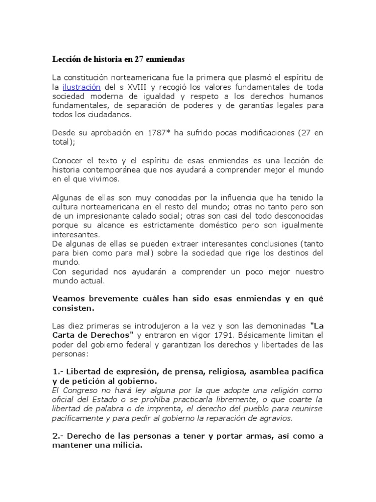 Lección de Historia en 27 Enmiendas | PDF | Presidentes de los Estados Unidos | Gobierno americano