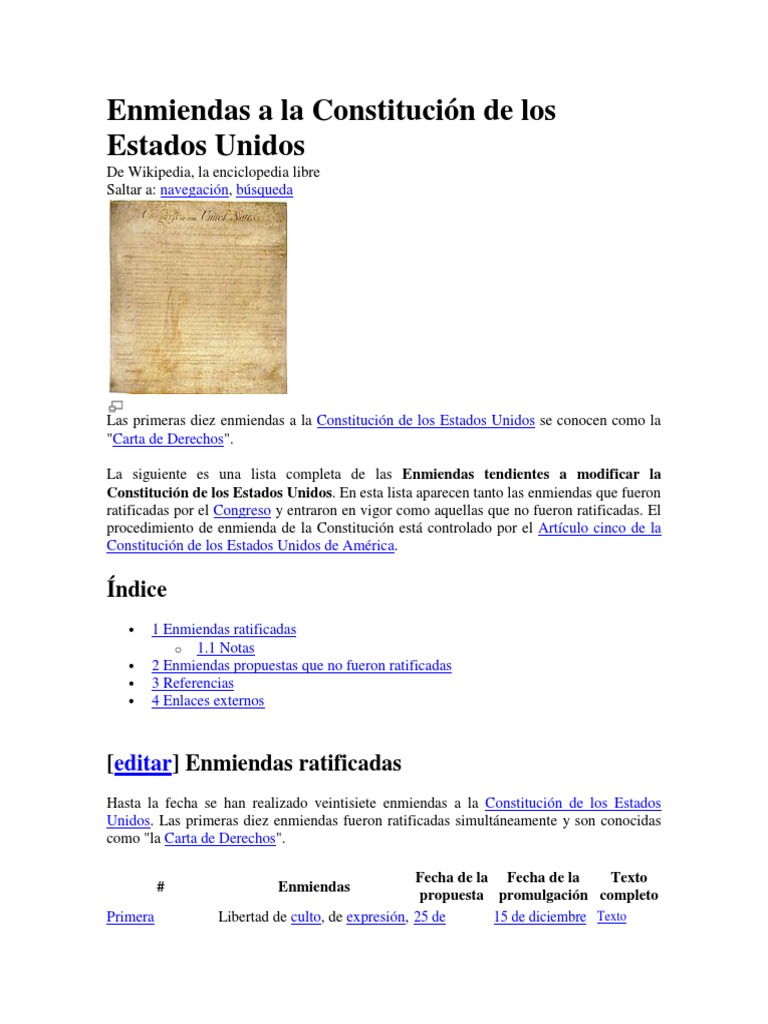 Enmiendas A La Constitución de Los Estados Unidos - Wikipedia, La Enciclopedia Libre | PDF | Declaración de derechos de los Estados Unidos | Constitución de los Estados Unidos