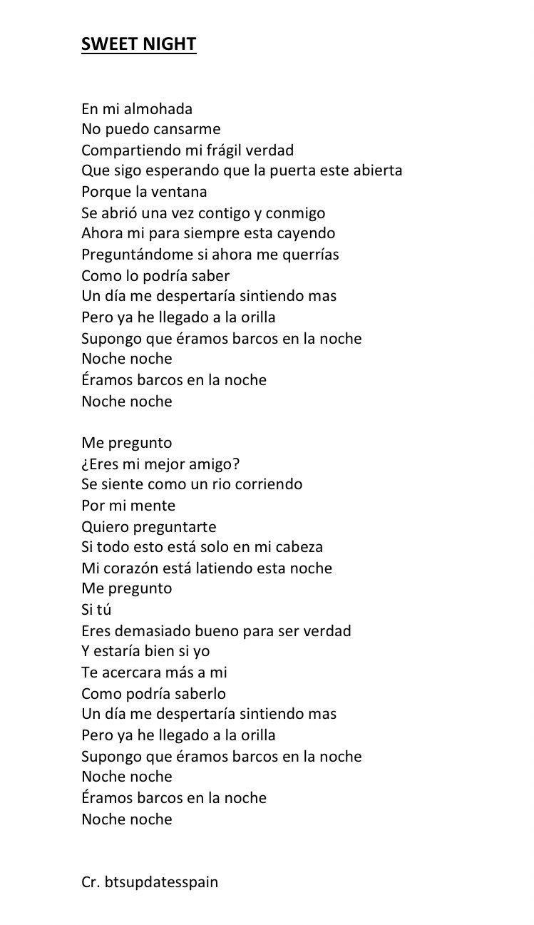 Bangtan Boys⁷ 💛💜🇪🇸 on X: "[Trad | V - Sweet Night] “Mi corazón esta latiendo esta noche / Me pregunto si tú Eres demasiado bueno para ser verdad / Y estaría bien