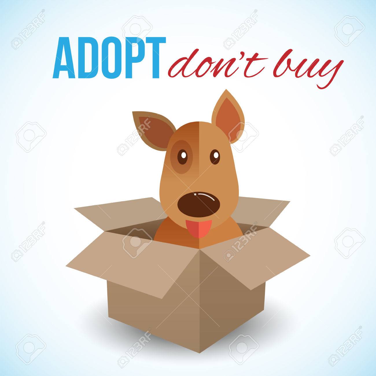 Perro Lindo En Una Caja Con Adoptar No Compre Texto. Animales Sin Hogar Concepto, Mascotas Adopción Tema. Ilustración Del Vector. Ilustraciones svg, vectoriales, clip art vectorizado libre de derechos. Image 58702789