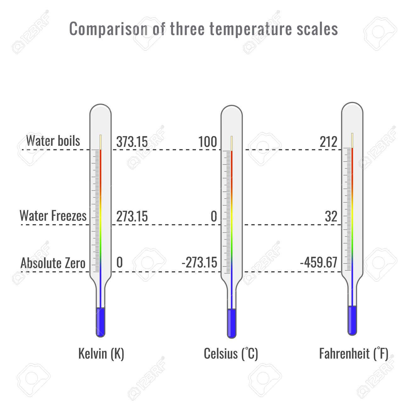 Temperature scales. Celsius, Fahrenheit and Kelvin thermometers. comparison and difference. vector illustration Stock Vector Image & Art - Alamy
