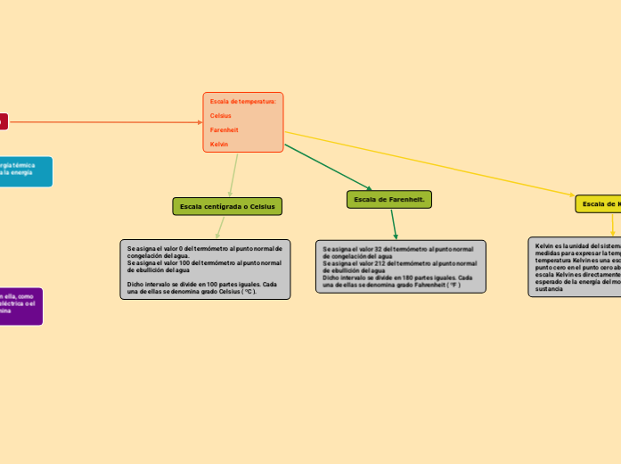 Temperatura (Kelvin /Celsius/Fahrenheit) - Mind Map