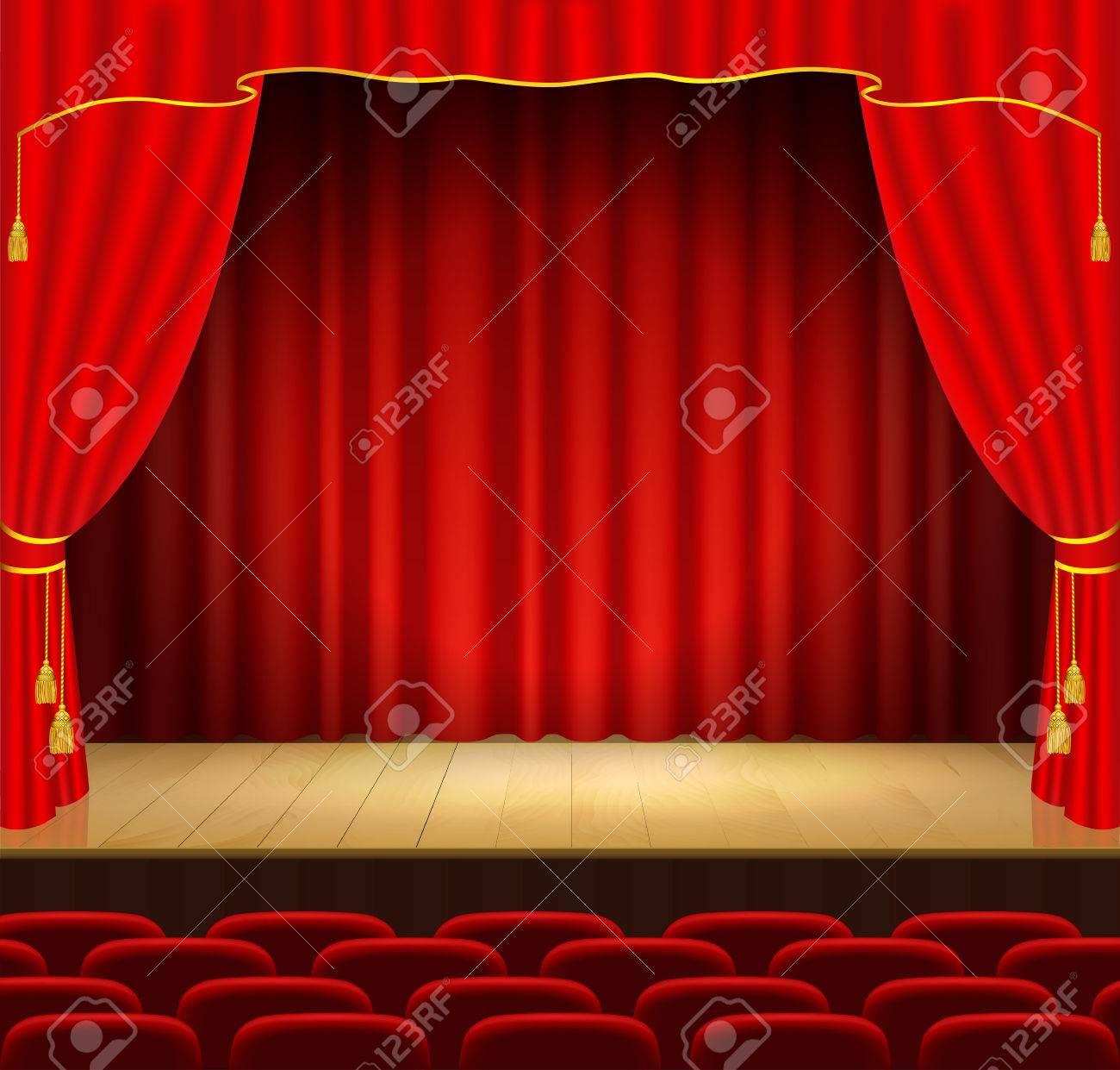 Teatro Escenario Con Telón Rojo Ilustraciones svg, vectoriales, clip art vectorizado libre de derechos. Image 34770305