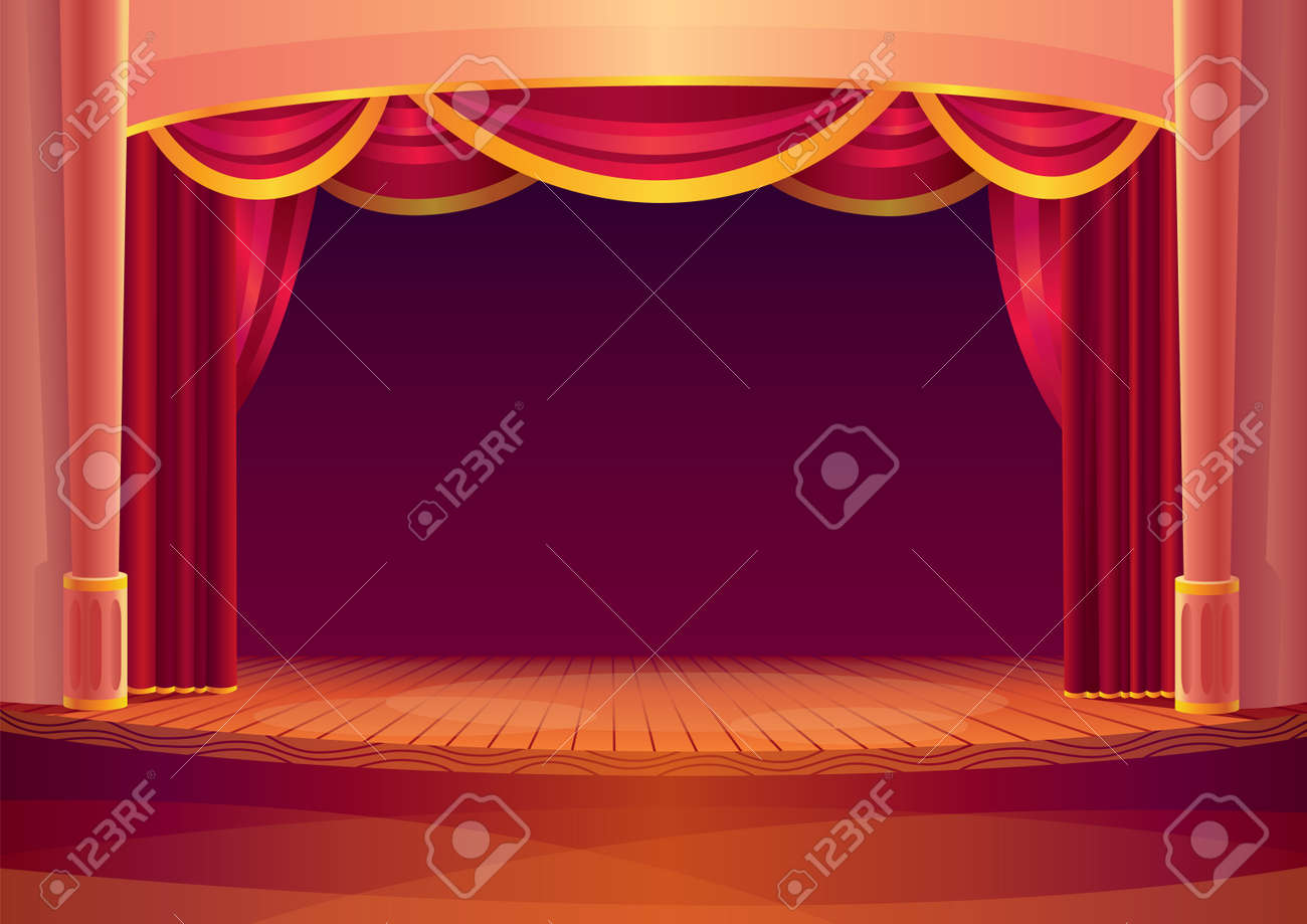 Escenario de teatro de dibujos animados con cortinas rojas | Vector Gratis | Escenario teatro, Escenario, Cortinas rojas