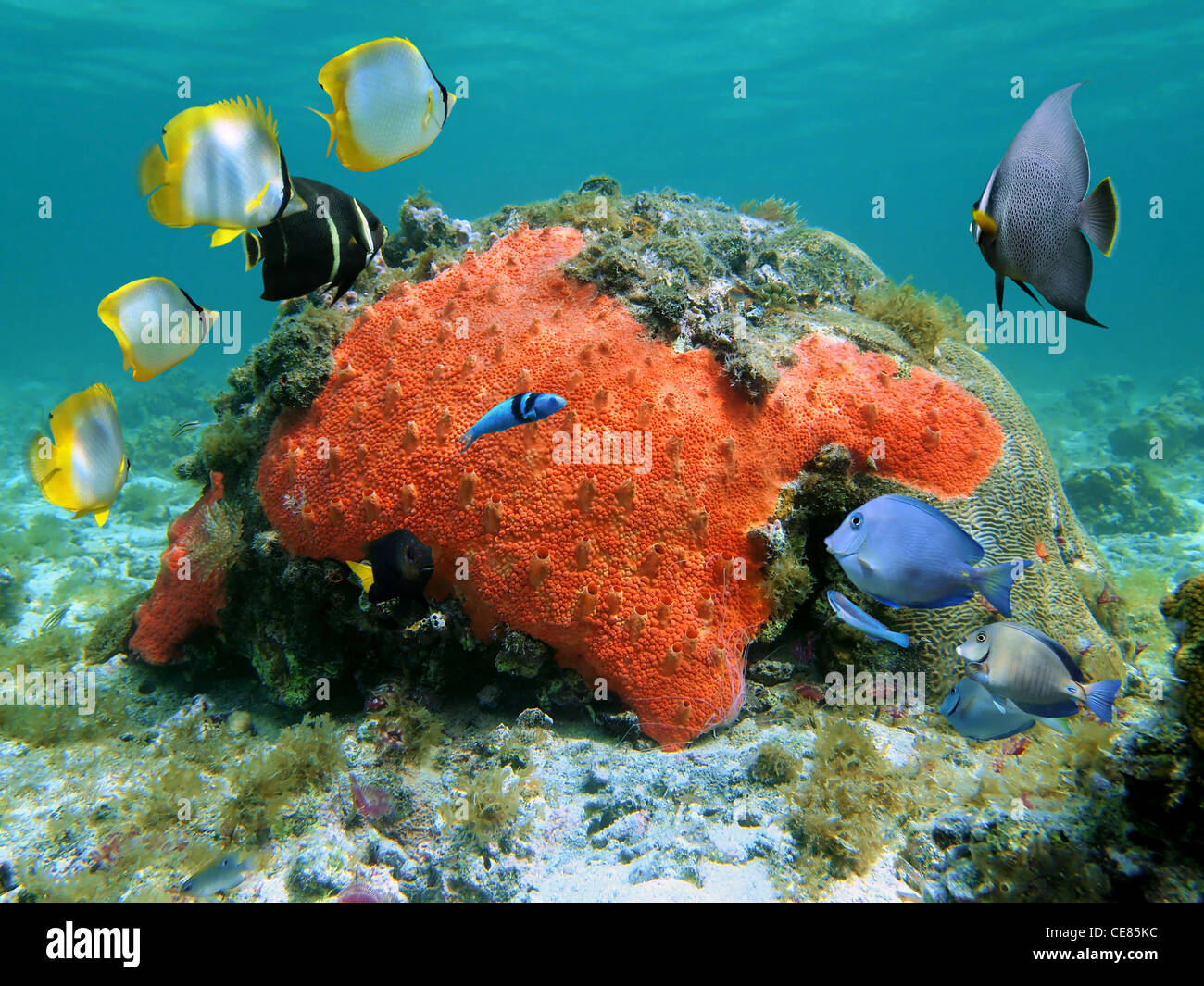 Arrecife De Coral Bajo El Agua Con Magníficos Colores De Esponja De Mar, Caribe Fotos, retratos, imágenes y fotografía de archivo libres de derecho. Image 35804663