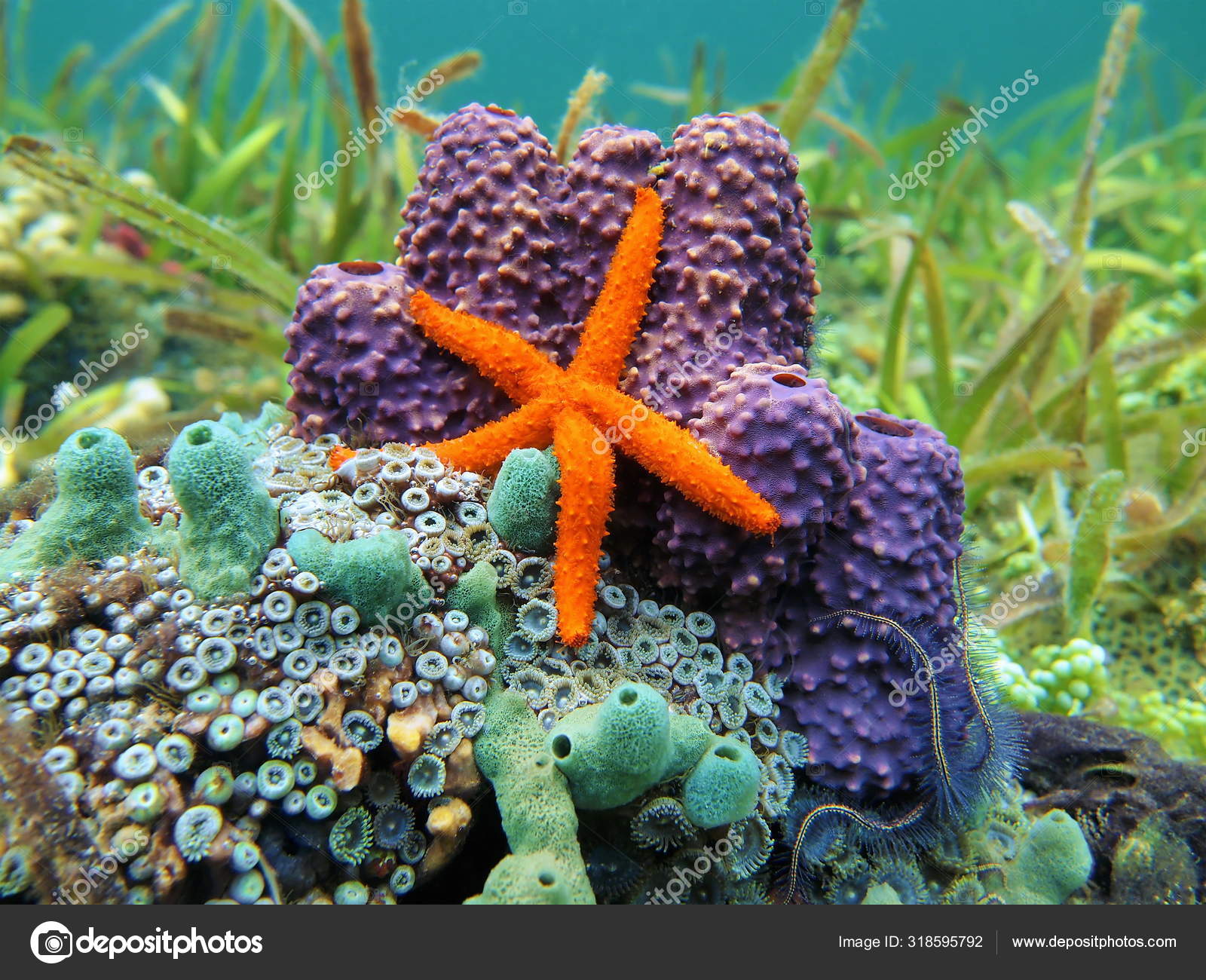Cometa Y La Estrella Frágil Esponja De Tubo De Color Púrpura, El Mar Caribe Fotos, retratos, imágenes y fotografía de archivo libres de derecho. Image 11252631