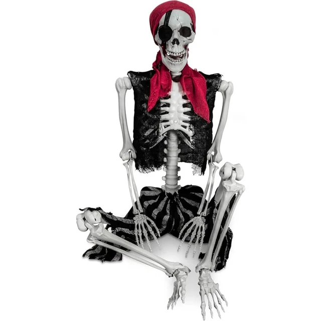 Amazon.com: Decoración de esqueleto de tamaño real de 5.4 pies, esqueleto de pirata humano posable, esqueleto de tamaño completo con articulaciones posables, parche para ojos para fiesta de Halloween, decoración : CAMIRUS: