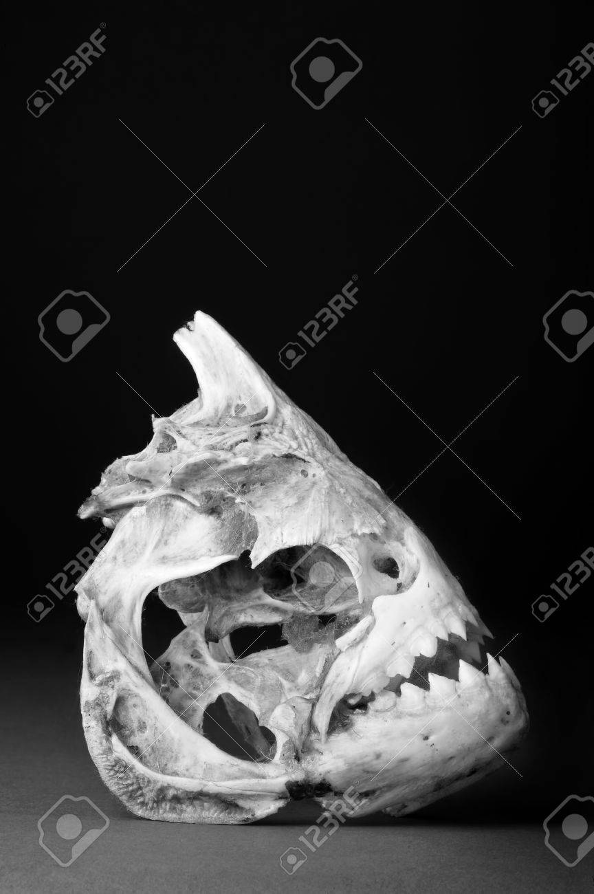 Real Piranha Skeleton In Black And White With Room For Your Type. Stock Photo, Picture and Royalty Free Image. Image 58082587.