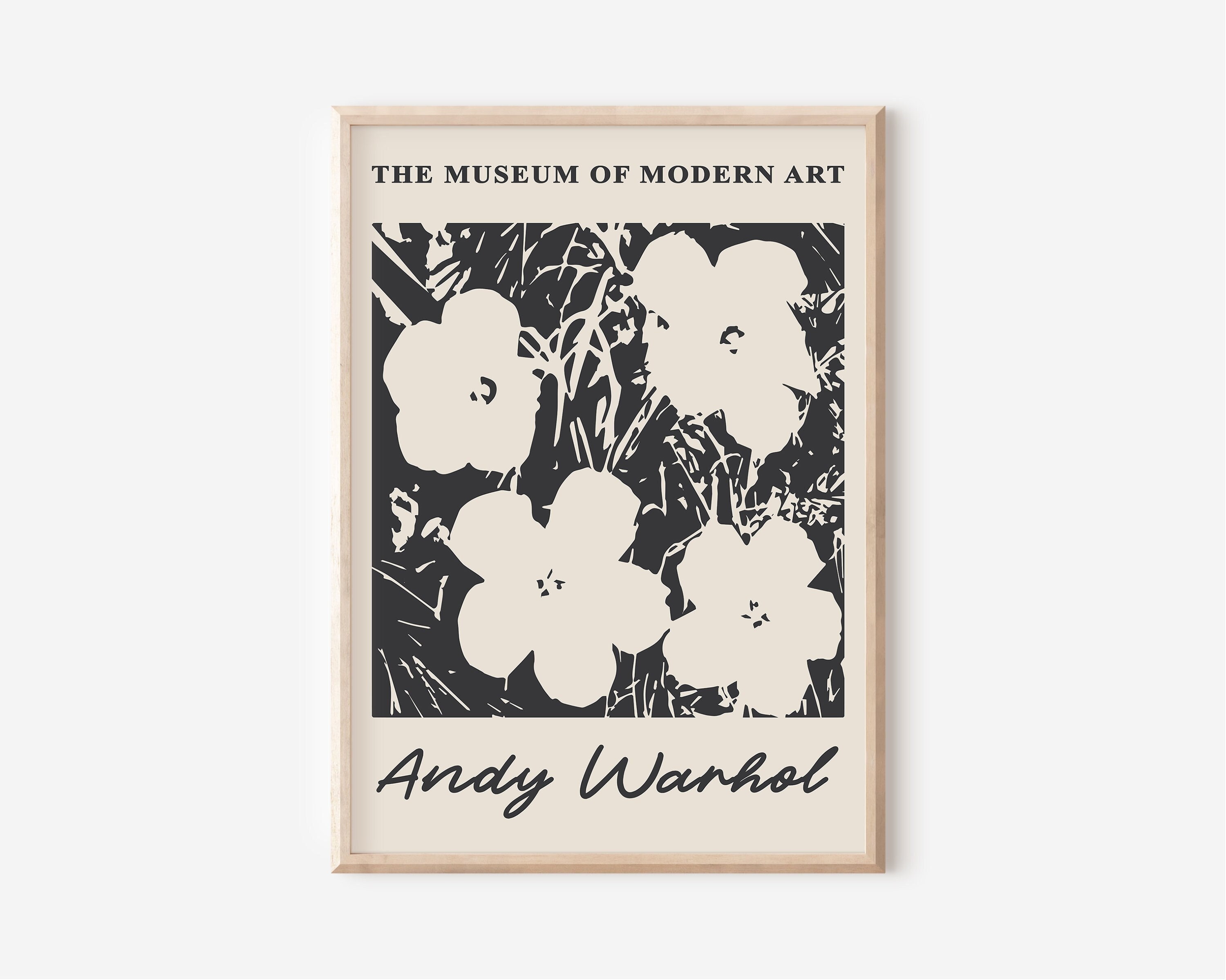 Cartel de la exposición de Andy Warhol, impresión de arte de flores monocromáticas de Andy Warhol, arte floral de la pared, flor en blanco y negro, arte vintage imprimible - Etsy México