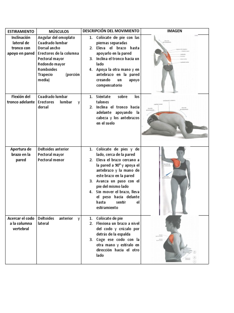 Ejercicios en imágenes para flexibilidad de Pecho. Parte II