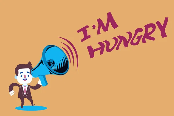 Texto Que Muestra Inspiración I M Hungry. Concepto De Negocio Que Tiene Un Fuerte Deseo O Deseo De Algo Para Poner En El Estómago Dibujo De Hombre En Uniforme De Pie Apuntando