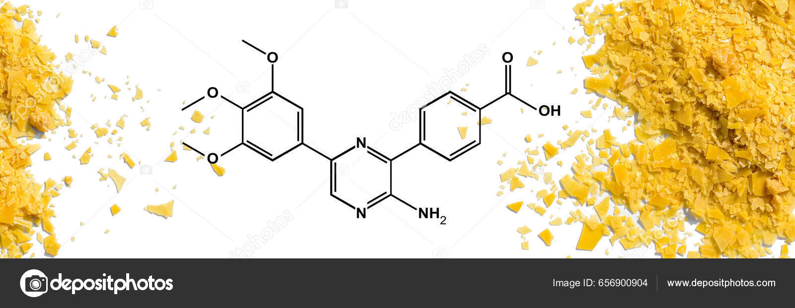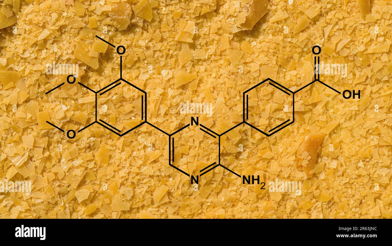 Escamas de cera de carnauba orgánica con estructura molecular. Ingrediente químico utilizado en la industria cosmética Fotografía de stock - Alamy