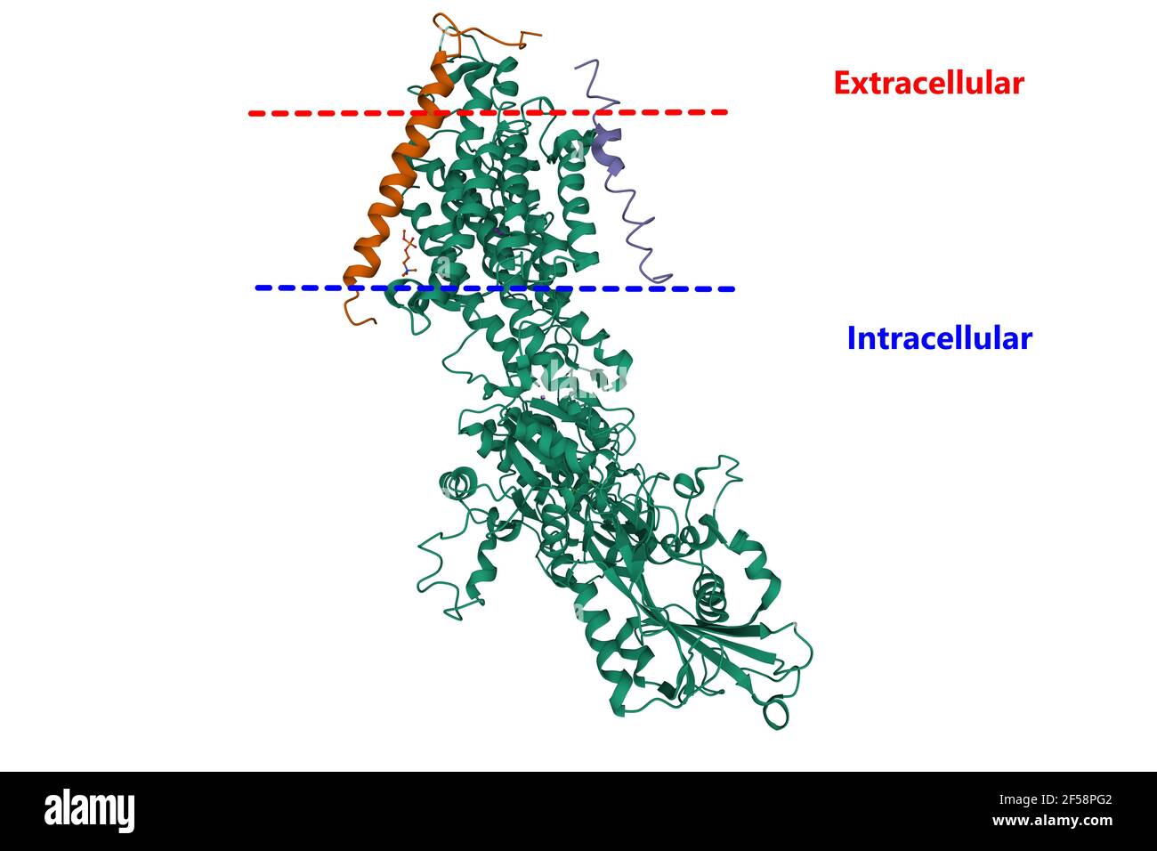 La bomba de sodio-potasio. El modelo de ordenador que muestra la estructura de la bomba de sodio-potasio con la Na-K-Atpasa subunidad alfa (azul), la subunidad beta (ma Fotografía de stock - Alamy