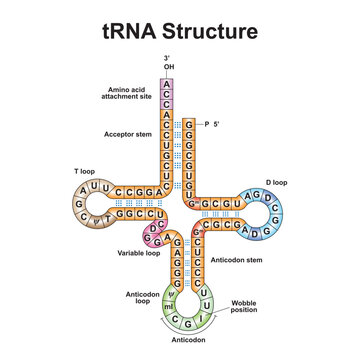 Structure of tRNA. Two-dimensional structure. Transfer RNA is a small RNA molecule that participates in protein synthesis. Stock Vector | Adobe Stock