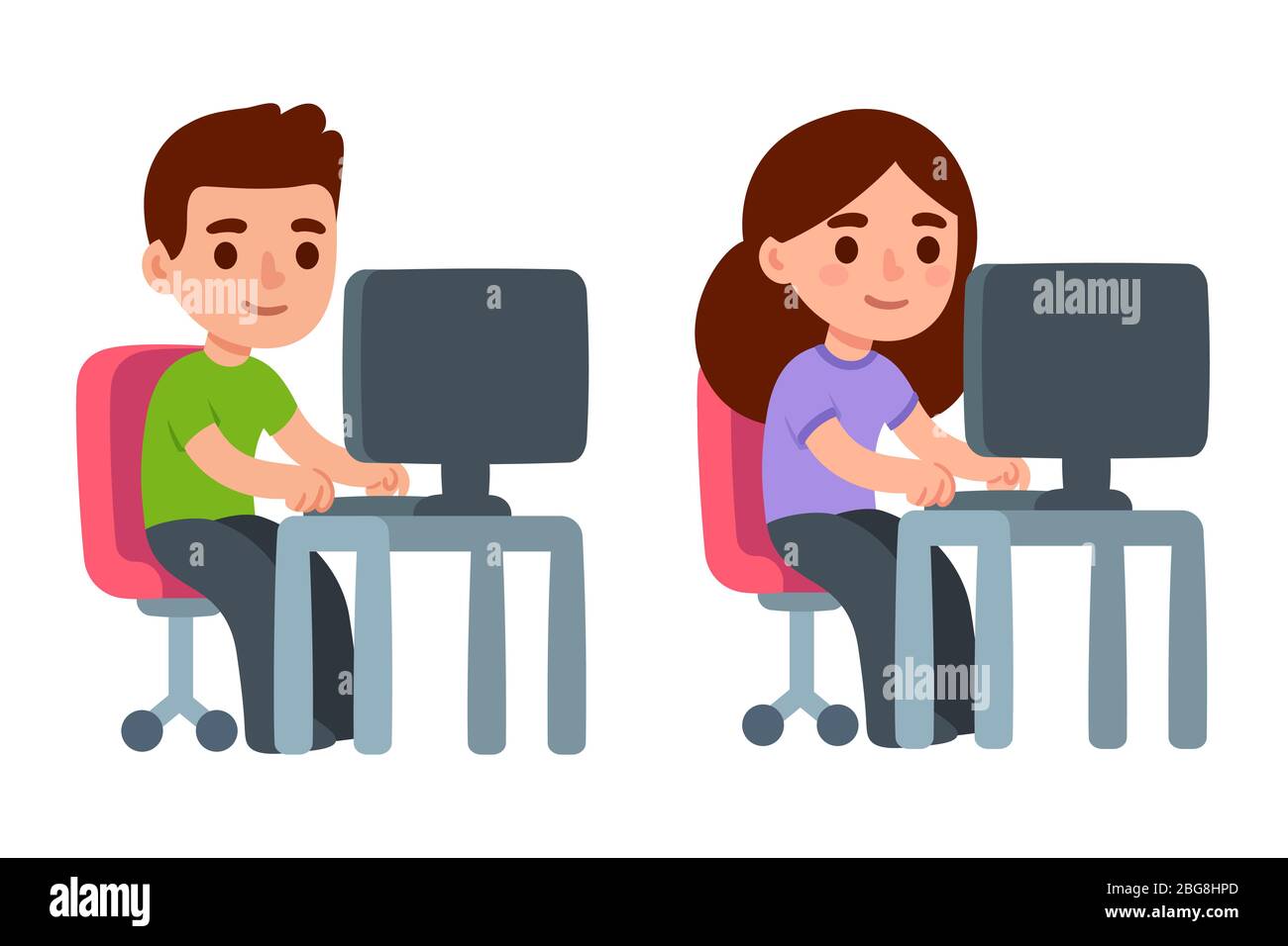 Los Estudiantes Muchacho Y Muchacha Están Trabajando Con El Ordenador En Sala De Clase Ilustración del Vector - Ilustración de estudiantes, historieta: 85532177