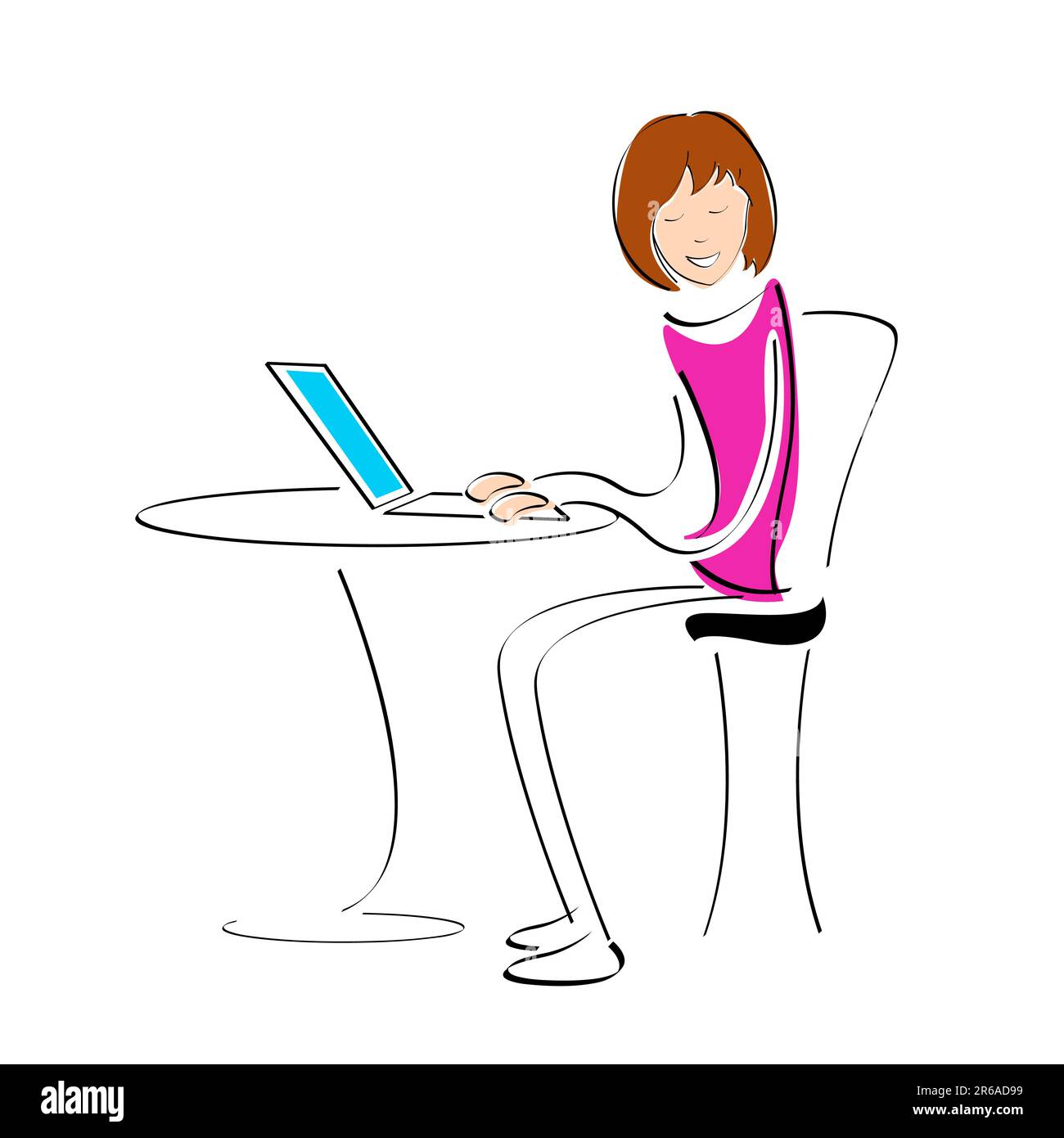 Estudiante trabajando en computadora Imágenes vectoriales de stock - Alamy