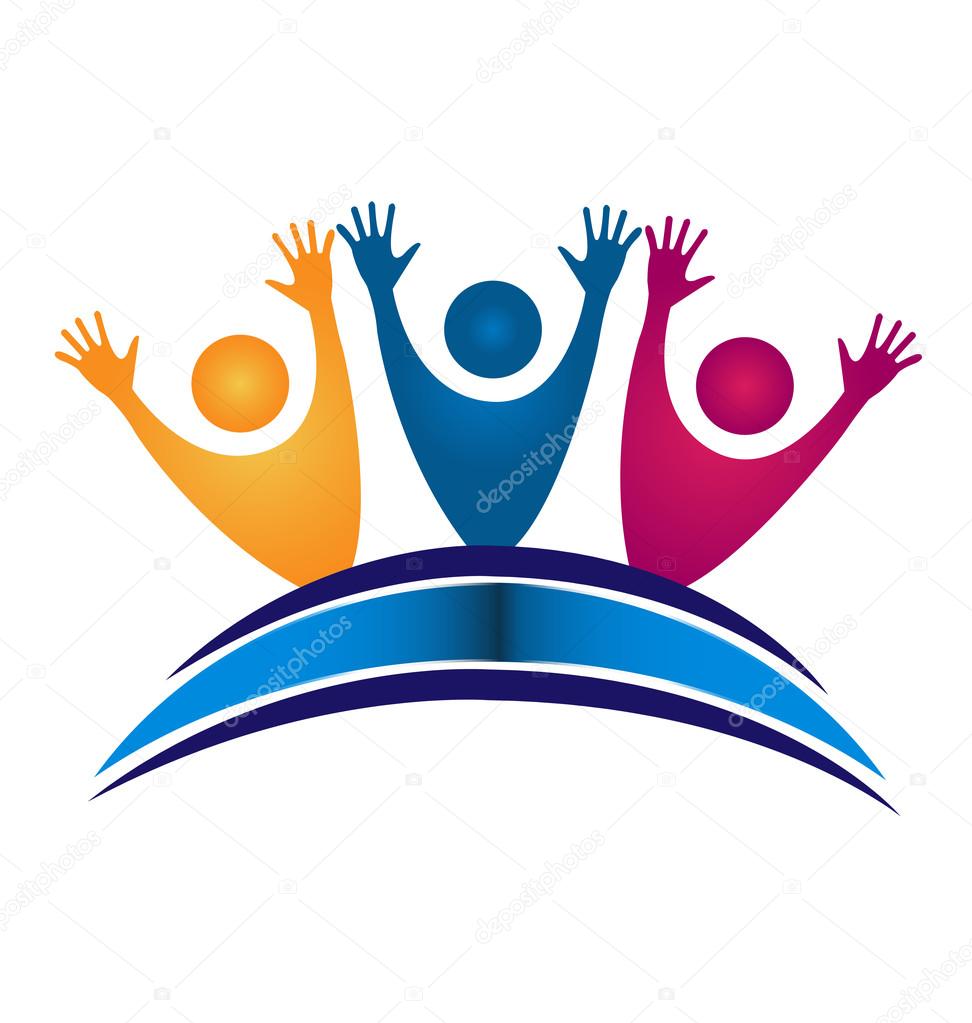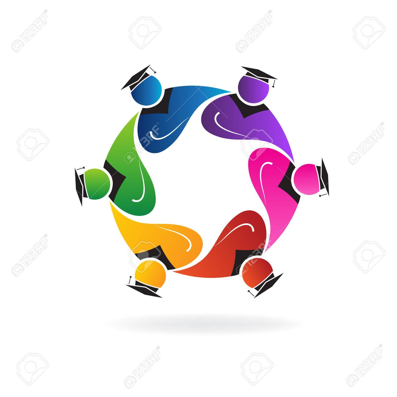 Trabajo En Equipo Estudiantes De Graduación En Un Abrazo Vector Logo Ilustraciones svg, vectoriales, clip art vectorizado libre de derechos. Image 83539122