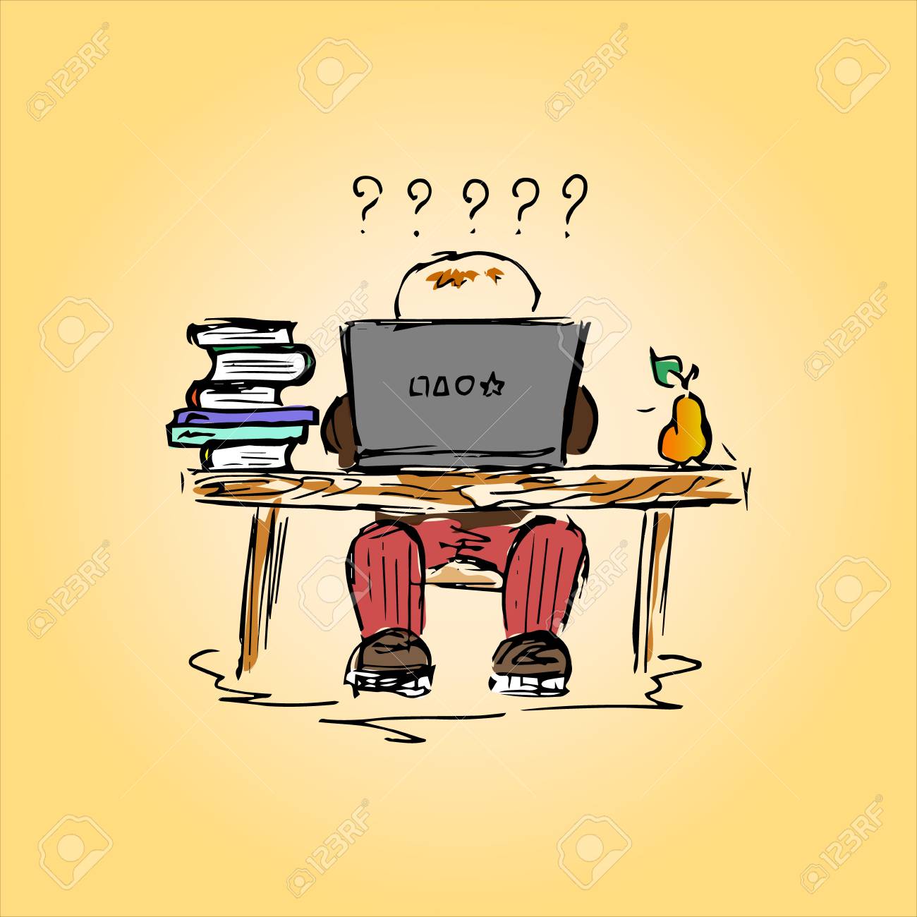 Estudiante Trabaja En La Ilustración De Vector De Laptop. Clipart De Stock | Royalty-Free | FreeImages
