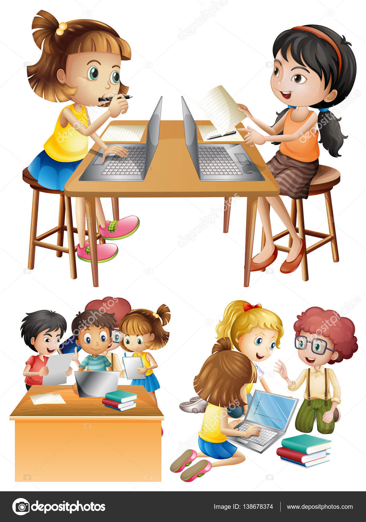 393 ilustraciones de stock de Niños trabajando escuela | Depositphotos