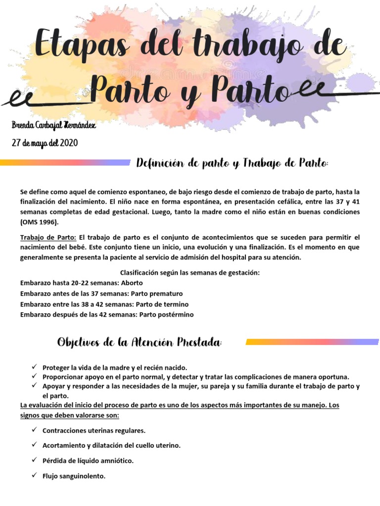 Trabajo DE Parto - espero sea de su agrada - La primera etapa del trabajo de parto ocurre en dos - Studocu