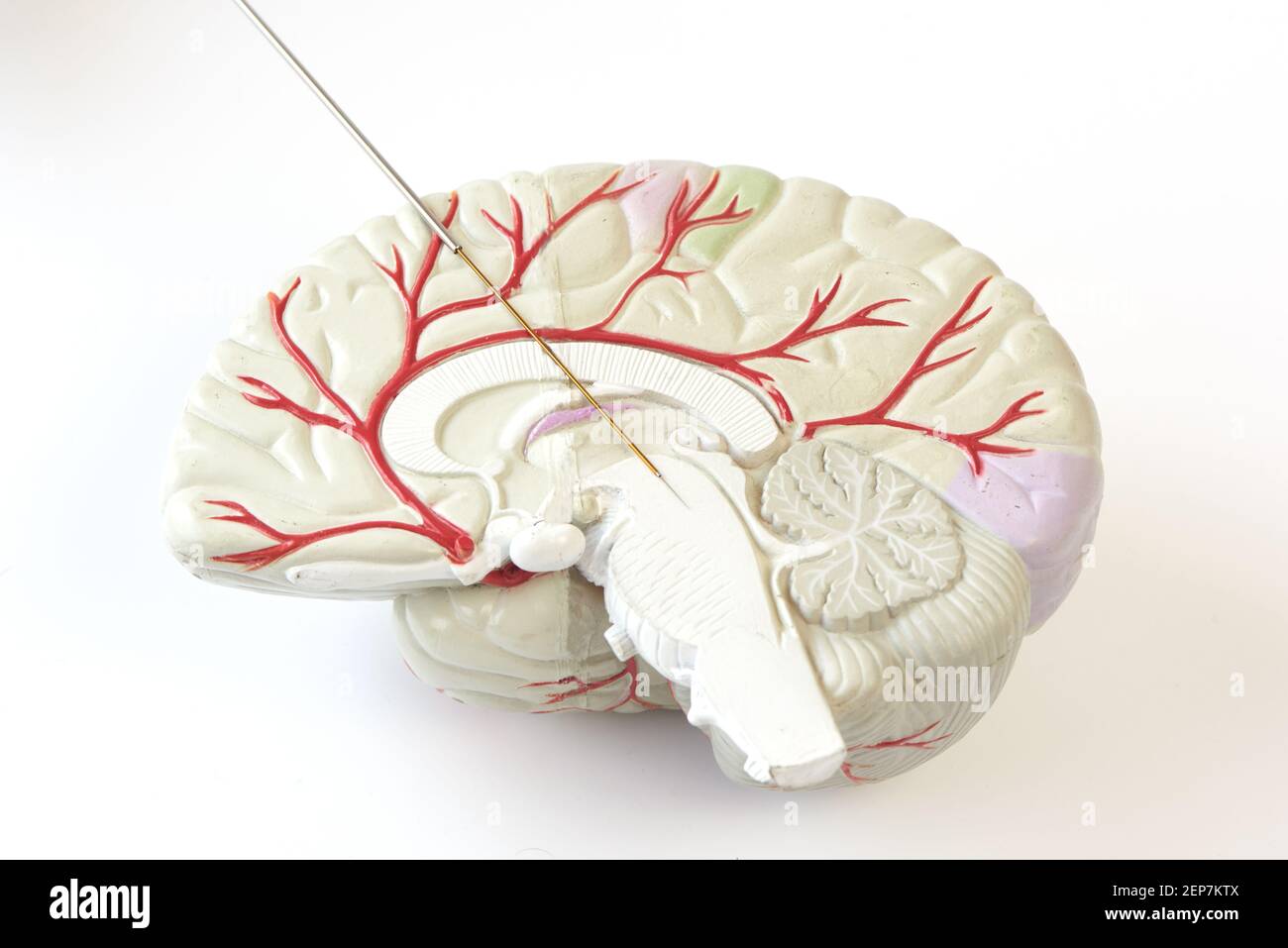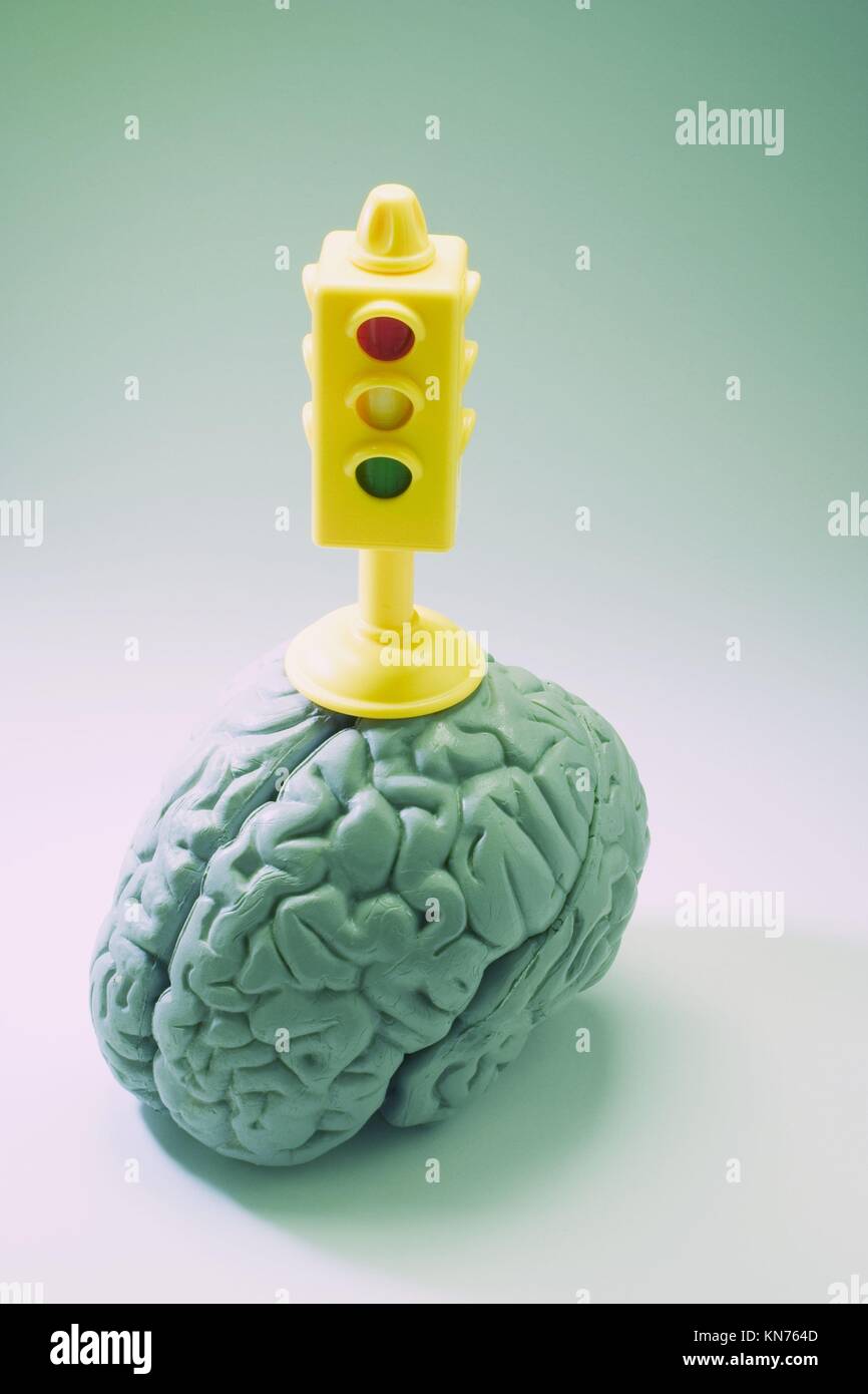 Semáforo en miniatura en el modelo de la anatomía del cerebro humano Fotografía de stock - Alamy