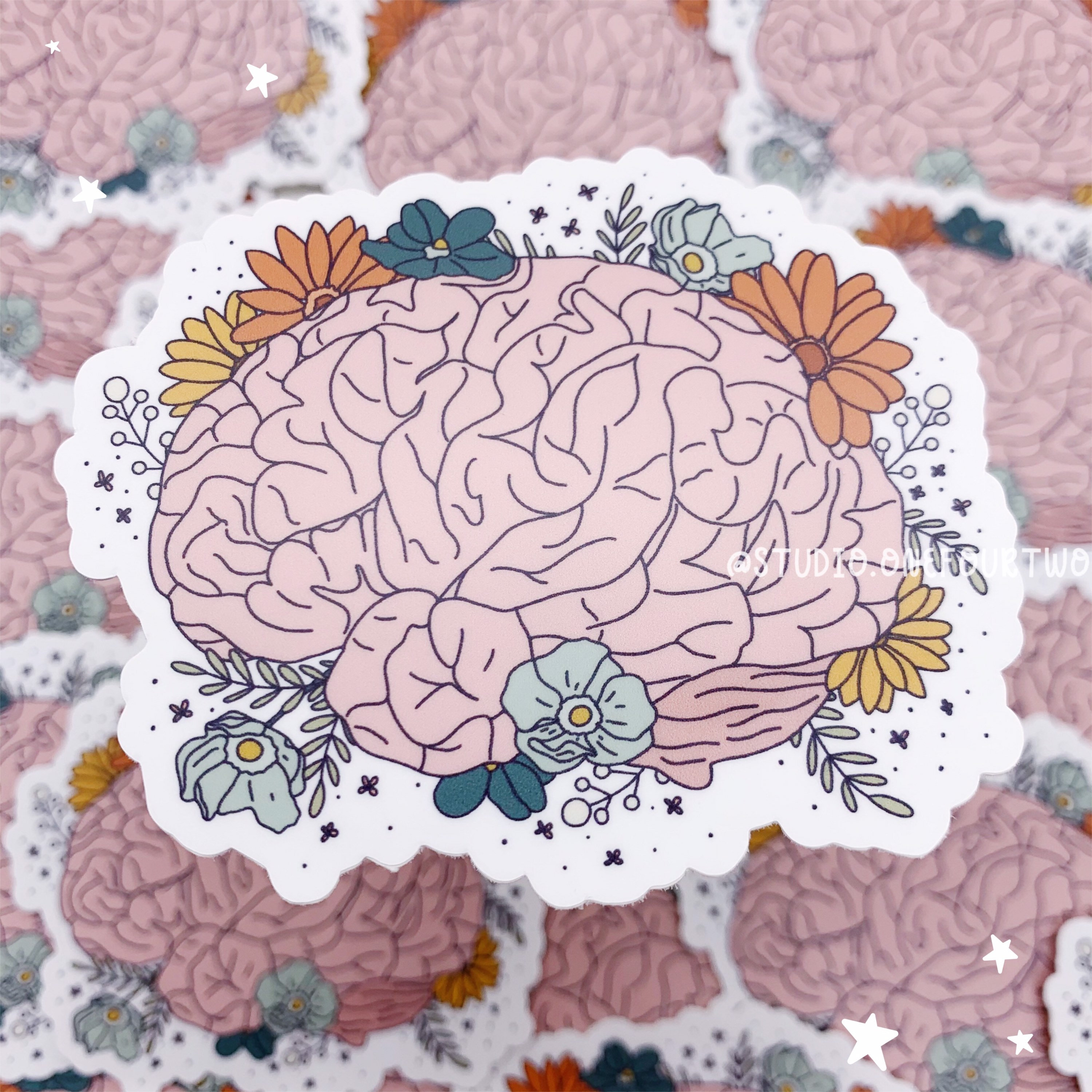 Etiqueta engomada linda del cerebro anatómico / Cerebro de la flor / Etiqueta engomada del vinilo - Etsy México