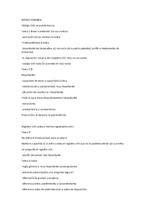 Repaso Examen - REPASO EXAMEN Código civil: se puede marcar Tema 1leer y entender (no va a entrar) - Studocu