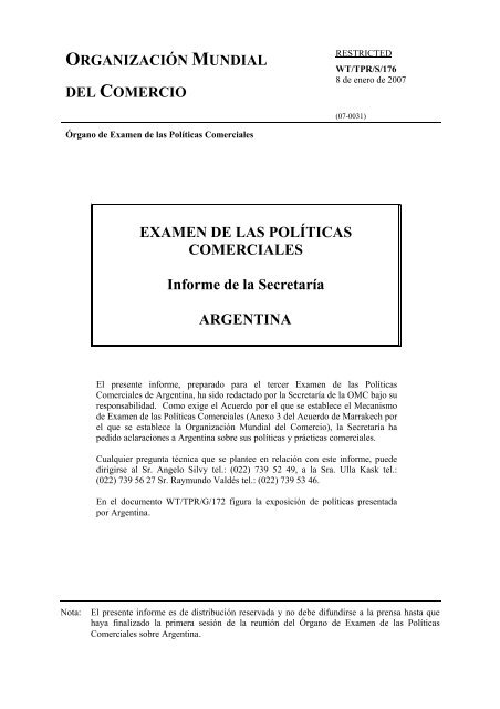 EXAMEN DE LAS POLÍTICAS COMERCIALES ... - Punto Focal
