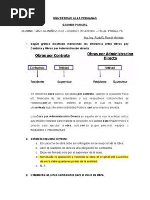 Examen Parcial Control y Supervision de Obra Marita Muñoz Ruiz | PDF