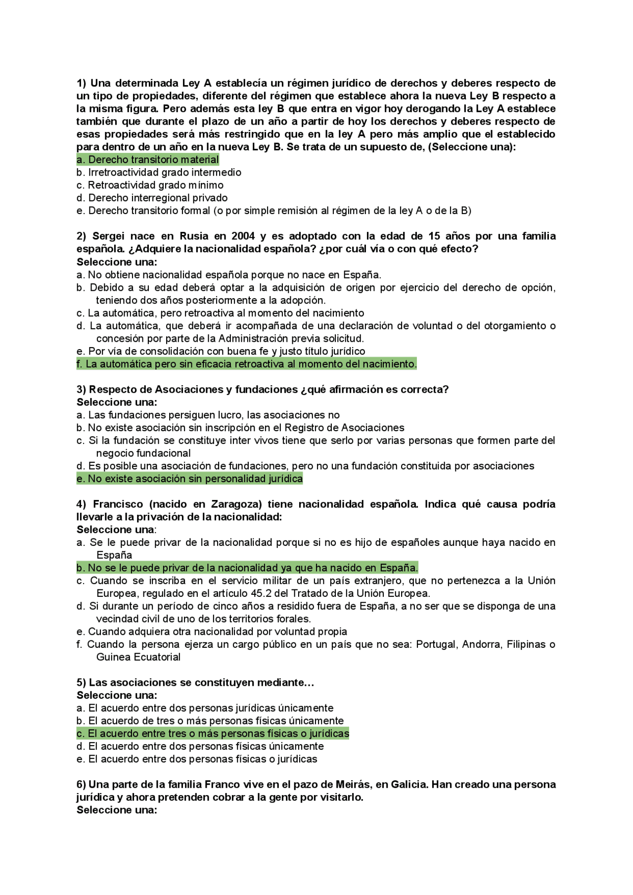 TEST de Derecho Civil 1 | Exámenes de Derecho | Docsity