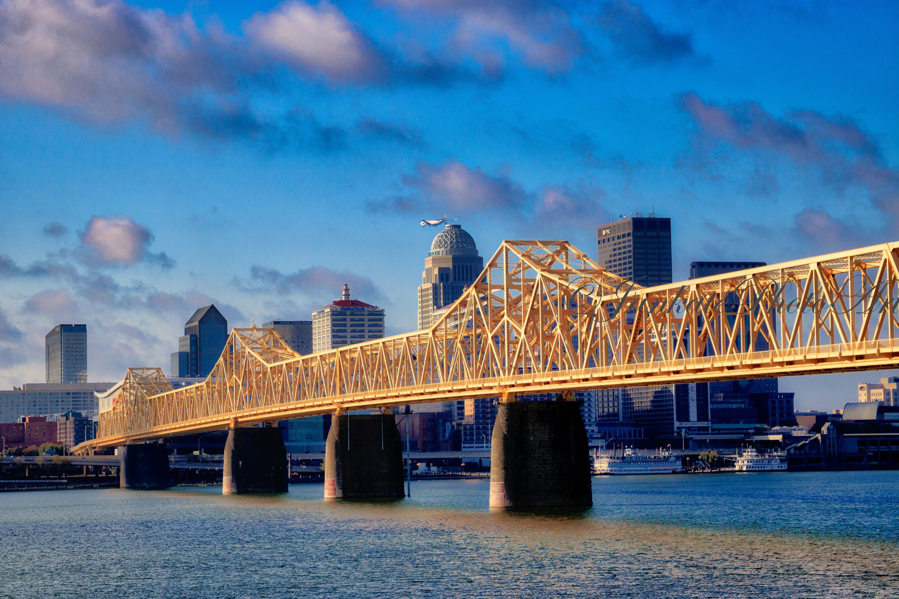 Louisville Kentucky, vista del centro, KY, puente sobre el río Ohio, impresión de metal fino, decoración fotográfica de arte urbano, lienzo, ...
