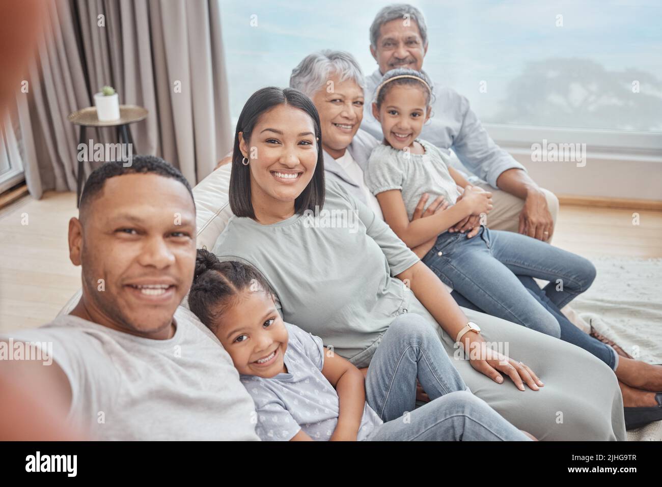 Feliz, Alegre Familia Mestiza, Sonriendo Para Tomarse Un Selfie En ...