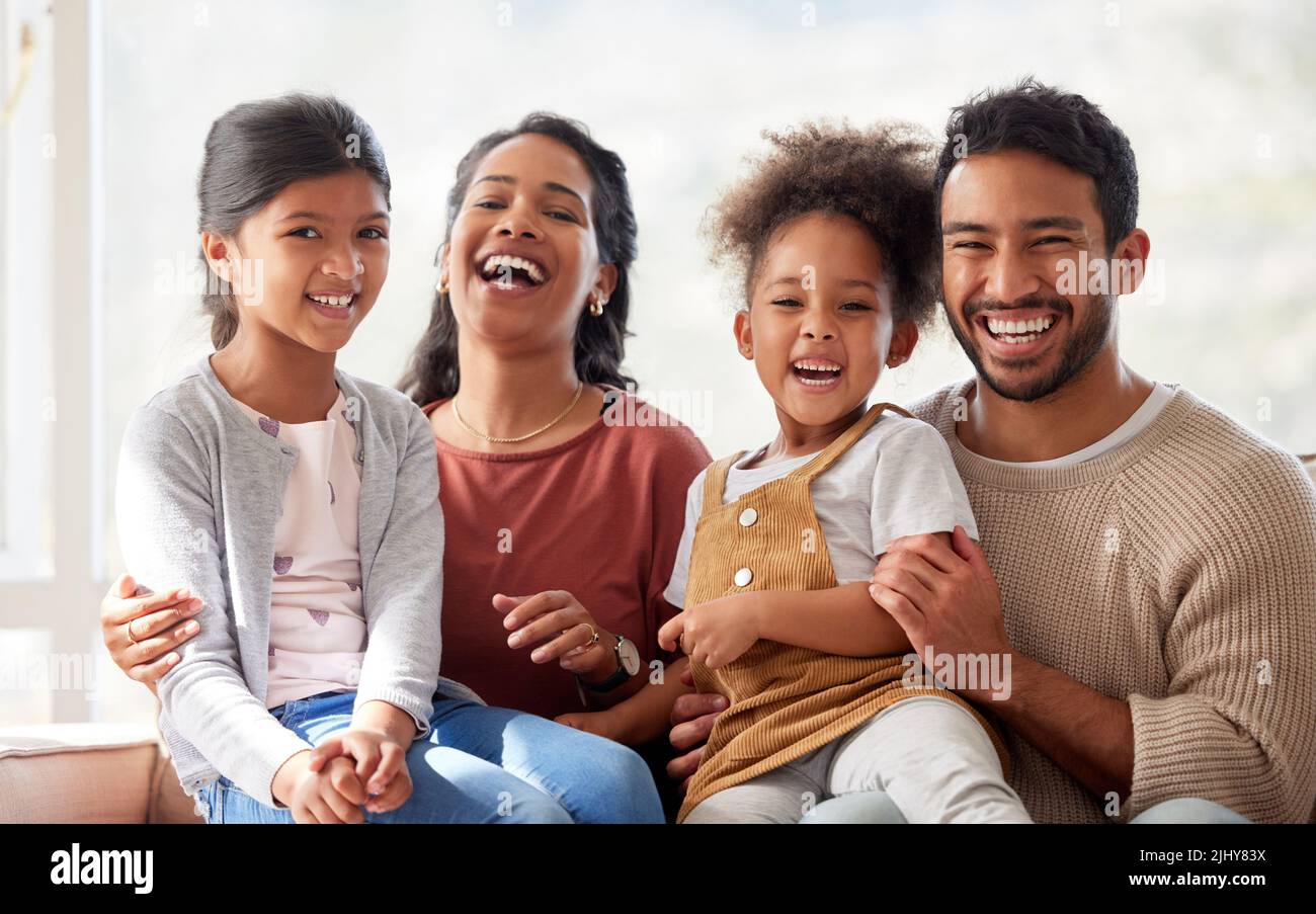 Portarit of a happy mixed race family smiling Stock Photo - Alamy