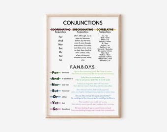 CONJUNCIONES, Tipos de conjunciones, FANBOYS, Partes del discurso, Idioma inglés, Aula, Afiche educativo, imprimible, descarga digital - Etsy España