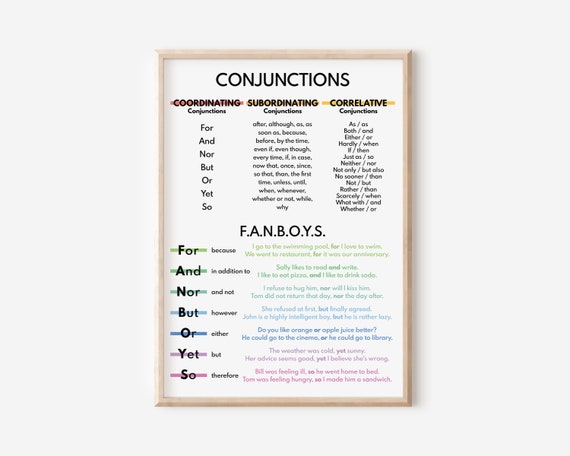 CONJUNCIONES DE FANBOYS para niños, partes del discurso, tabla de gramática del idioma inglés, póster de aula, póster educativo, descarga digital - Etsy México