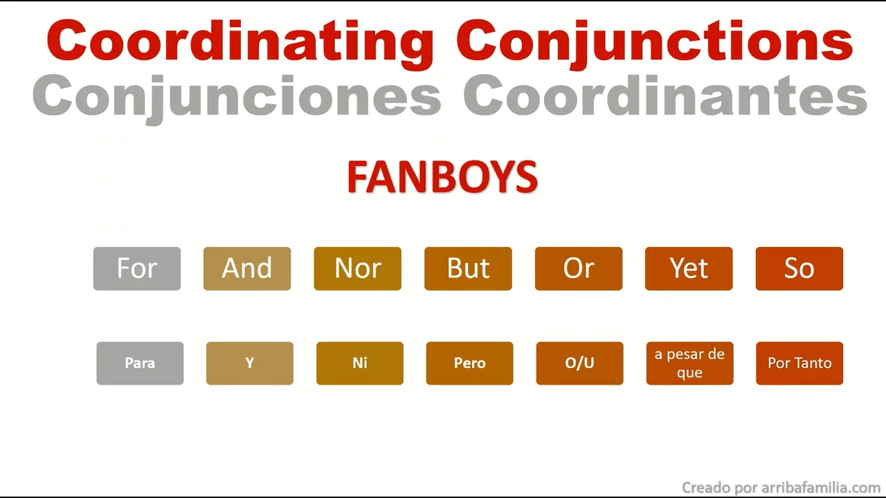 FANBOYS Coordinating Conjunctions in English and Spanish - YouTube