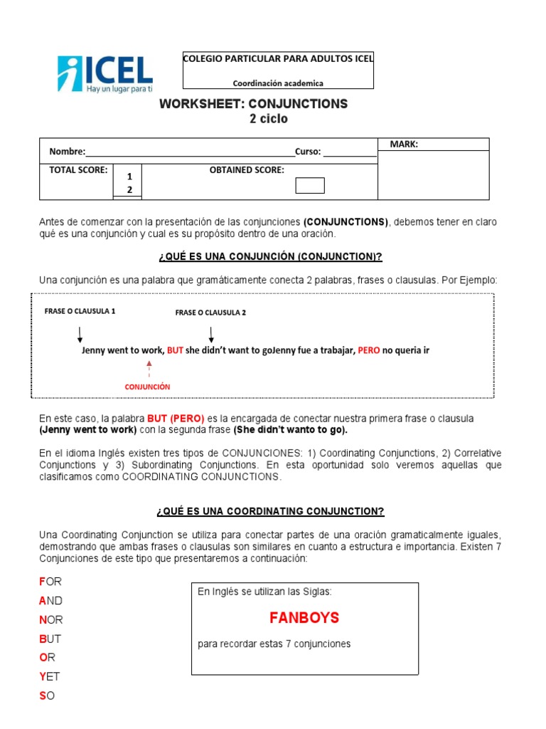 CONJUNCIONES Segundo Ciclo Septiembre | PDF | Oración (Lingüística) | Semántica